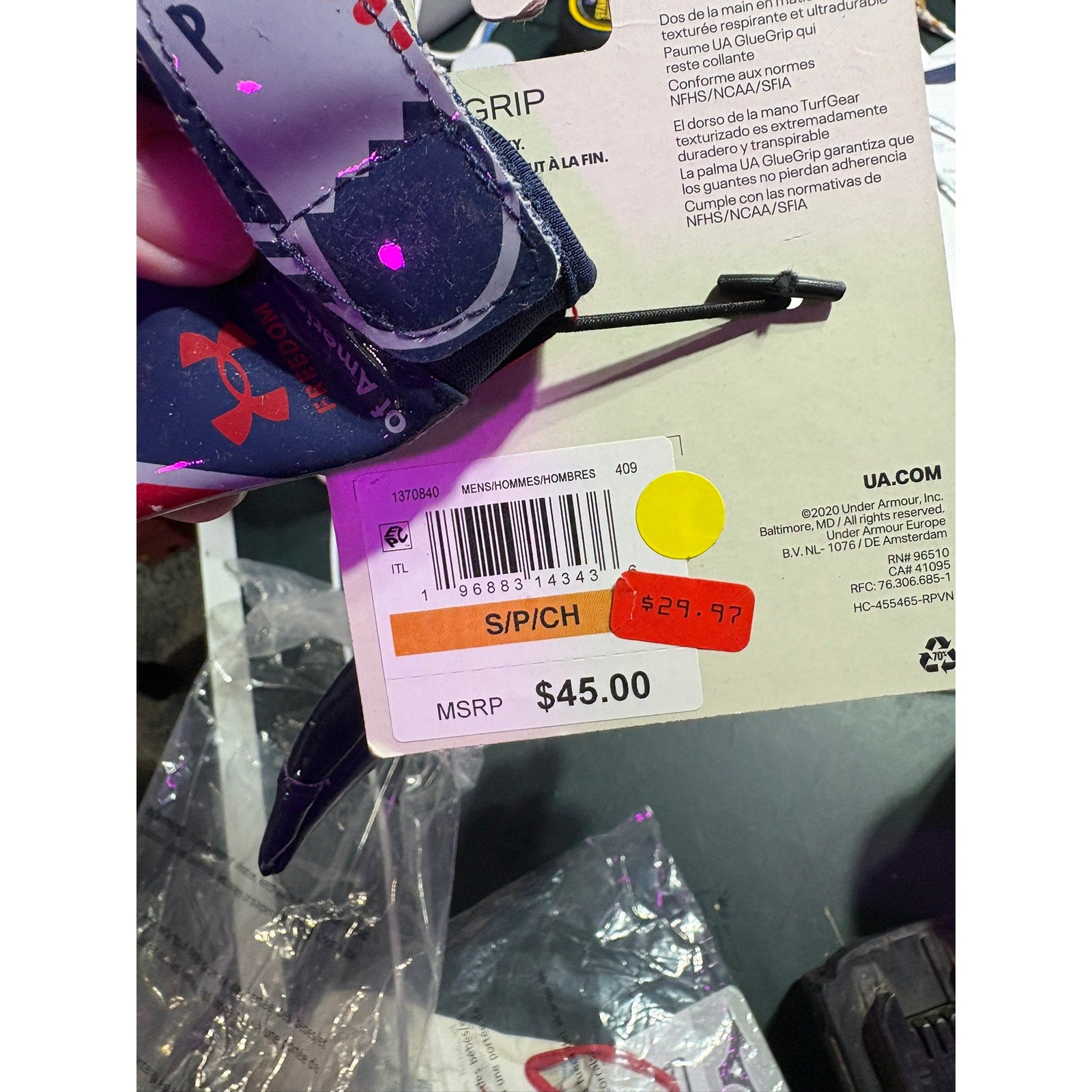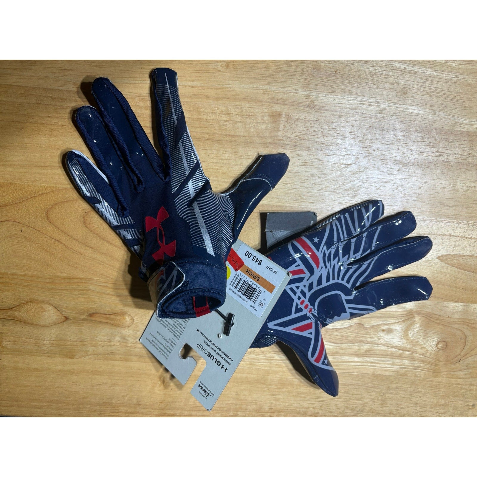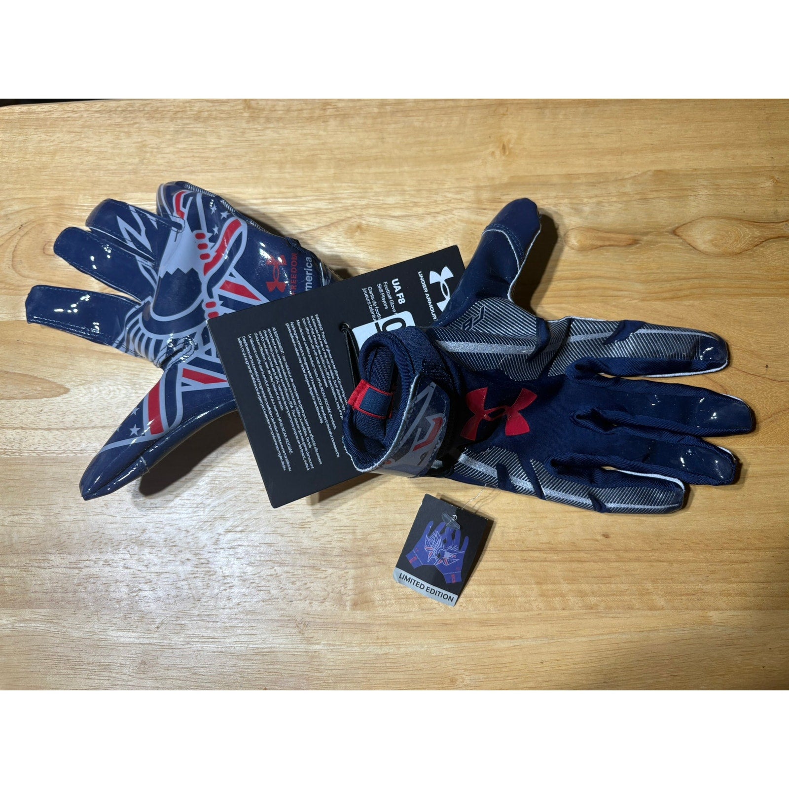 Mens Small Under Armour UA F8 Novelty GlueGrip Football Limited Edition Gloves - Academy/Steel/Red WR