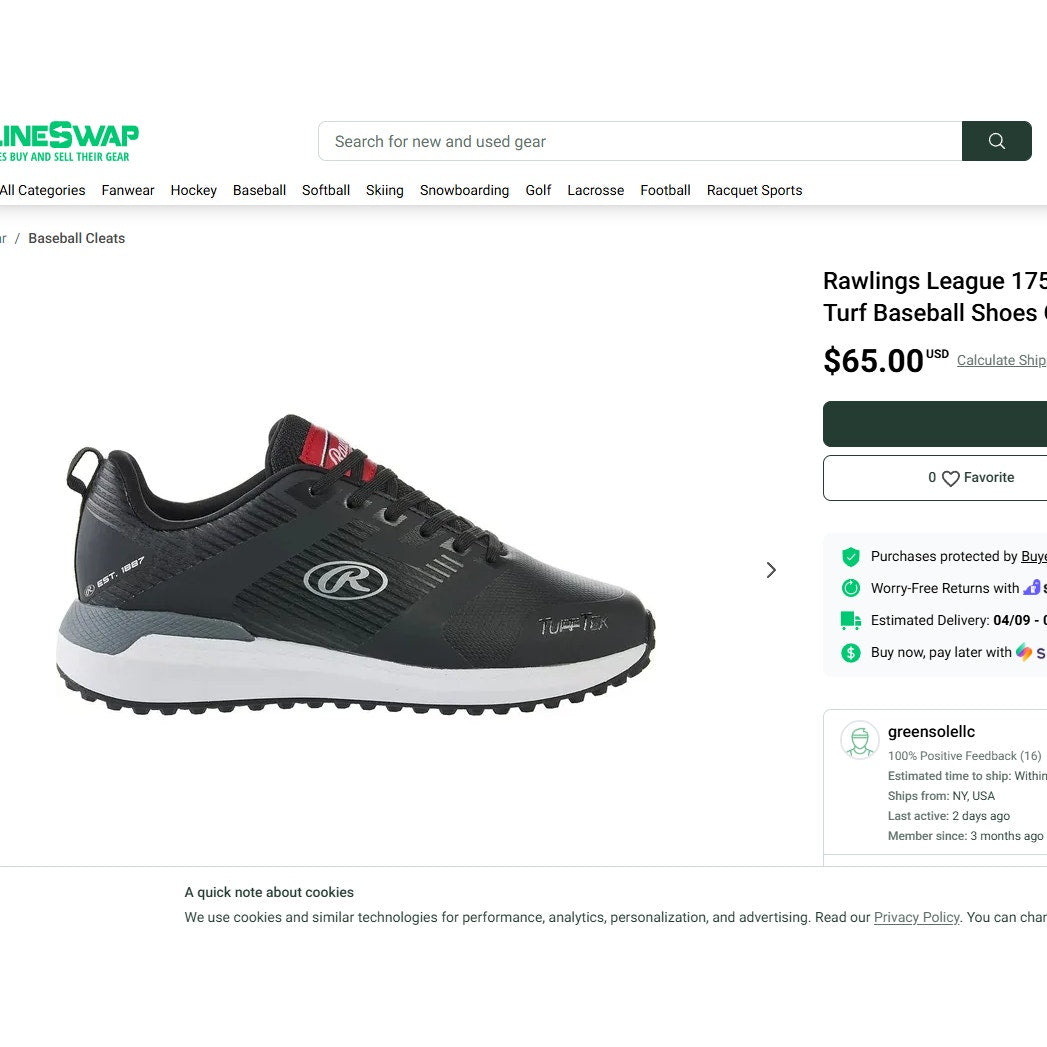 Men's Size 6.5D - Step up your game with these fantastic Black Rawlings League Men's Baseball Turf Cleats! These brand new cleats are perfect for any baseball or softball enthusiast looking for comfort and performance on the field.